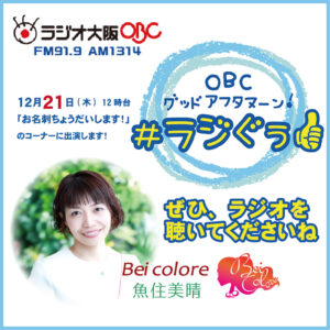 2023年12月21日(木) ラジオ大阪「OBCグッドアフタヌーン! #ラジぐぅ」に魚住美晴が出演します。